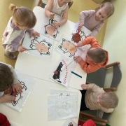 Milusińscy w tym dniu z wielkim zaangażowaniem i wyobraźnią kolorowali sylwetki kotków. Dzięki temu na gazetce pojawiły się przepiękne prace plastyczne, które wprawiały w dumę i zachwyt rodziców.